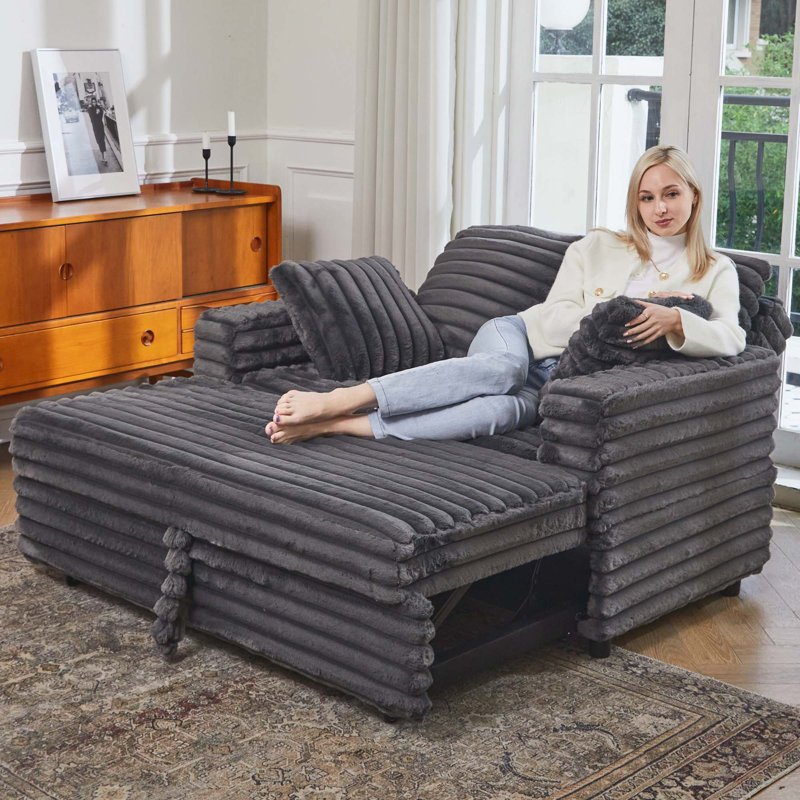 Soft Sofa, Soft Fabric, very suitable for apartment livingroom. The Chenille Double Seat Sofa Bed is also nice for cold day, which is warm and comfortable.The double seat couch can be turned into a sofa bed after pull out the bed module. Very practical sectional sofa. You will like it.