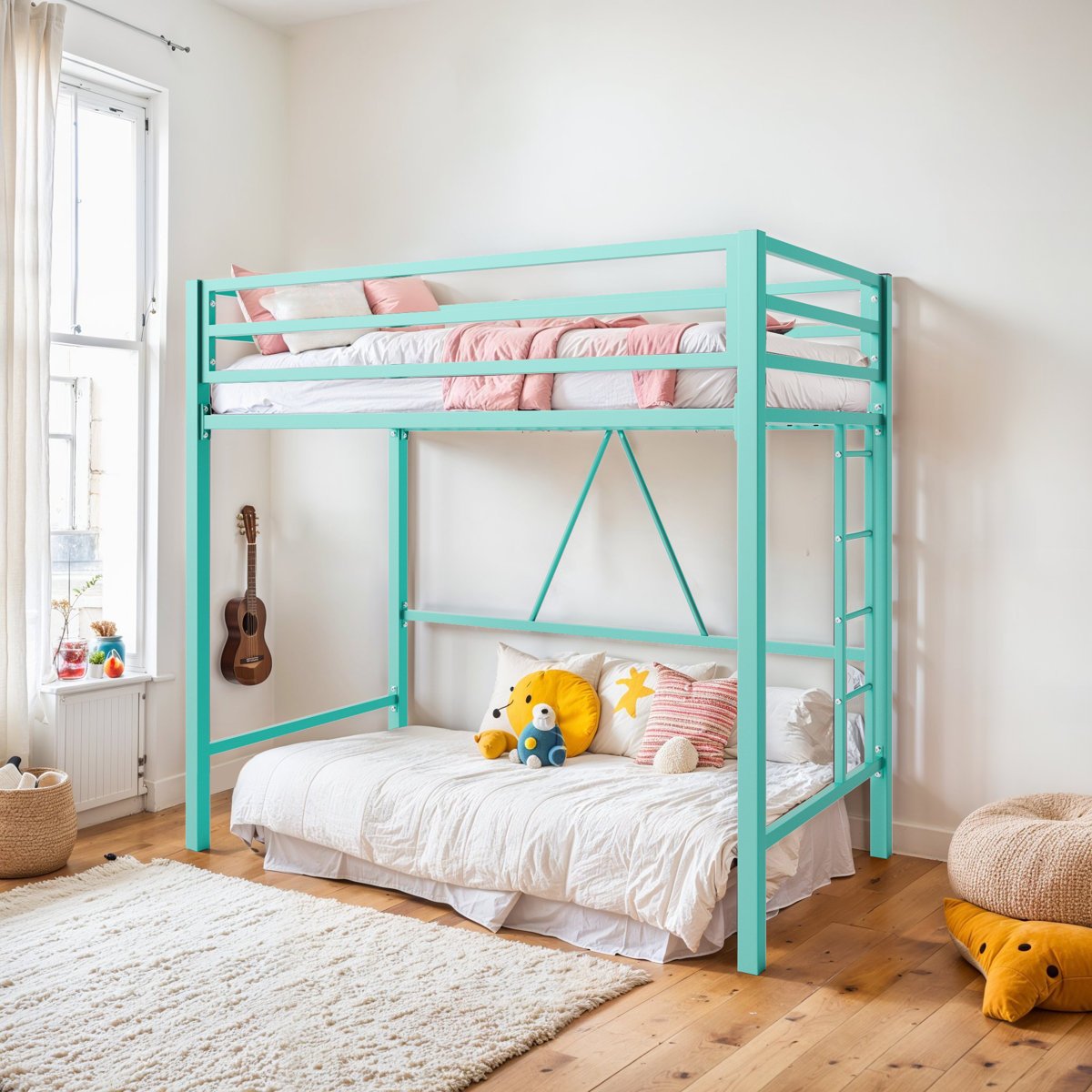 Looking for a way to add a pop of color to your child’s bedroom while also providing a fun and functional space to sleep, play, and study? Look no further than the Colorful Climber! This innovative loft bed frame features a twin-platform design, providing ample space for a comfortable night’s sleep. But that’s just the beginning! The Colorful Climber is available in three vibrant colors – Aqua Blue, White, and Black – allowing you to choose the perfect shade to match your child’s personality and bedroom décor.