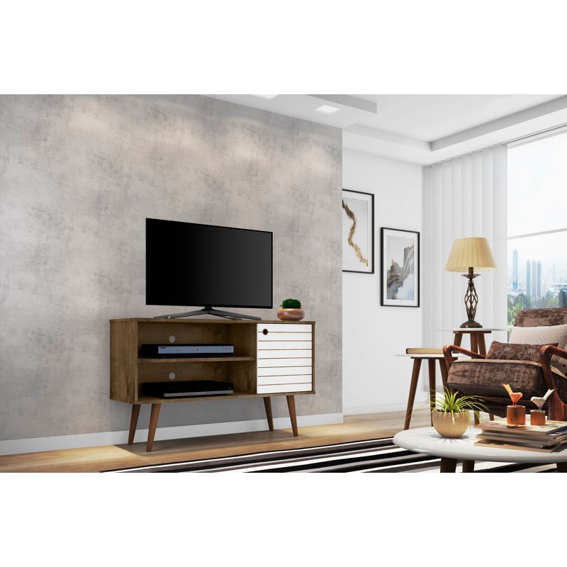 Bring mid-century modern charm to your entertainment center with this living room media console. The free-standing design makes it easy to display your television set in style.