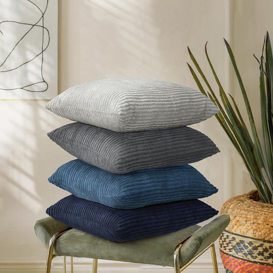 - Set of 4 decorative pillowcases, pillow filler included. The material is made of soft and skin-friendly corduroy, tightly sewn very environmentally friendly, durable and odourless, ideal for children and pets.