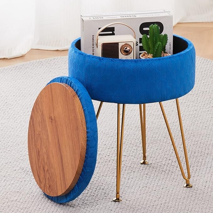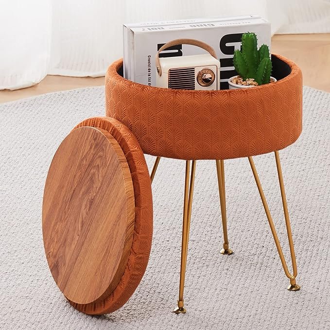 This velvet storage ottoman sits atop metal hairpin legs, lending it a stylish and modern appearance. Its lid can be removed to reveal storage space ideal for storing a few of your favorite possessions. It is versatile enough for use in your living room, office, or kid’s room. It can serve as a vanity chair, footrest, extra seating, and more, adding a sumptuous and inviting touch of luxury to any space. Why not consider adding this delightful addition to your room now?