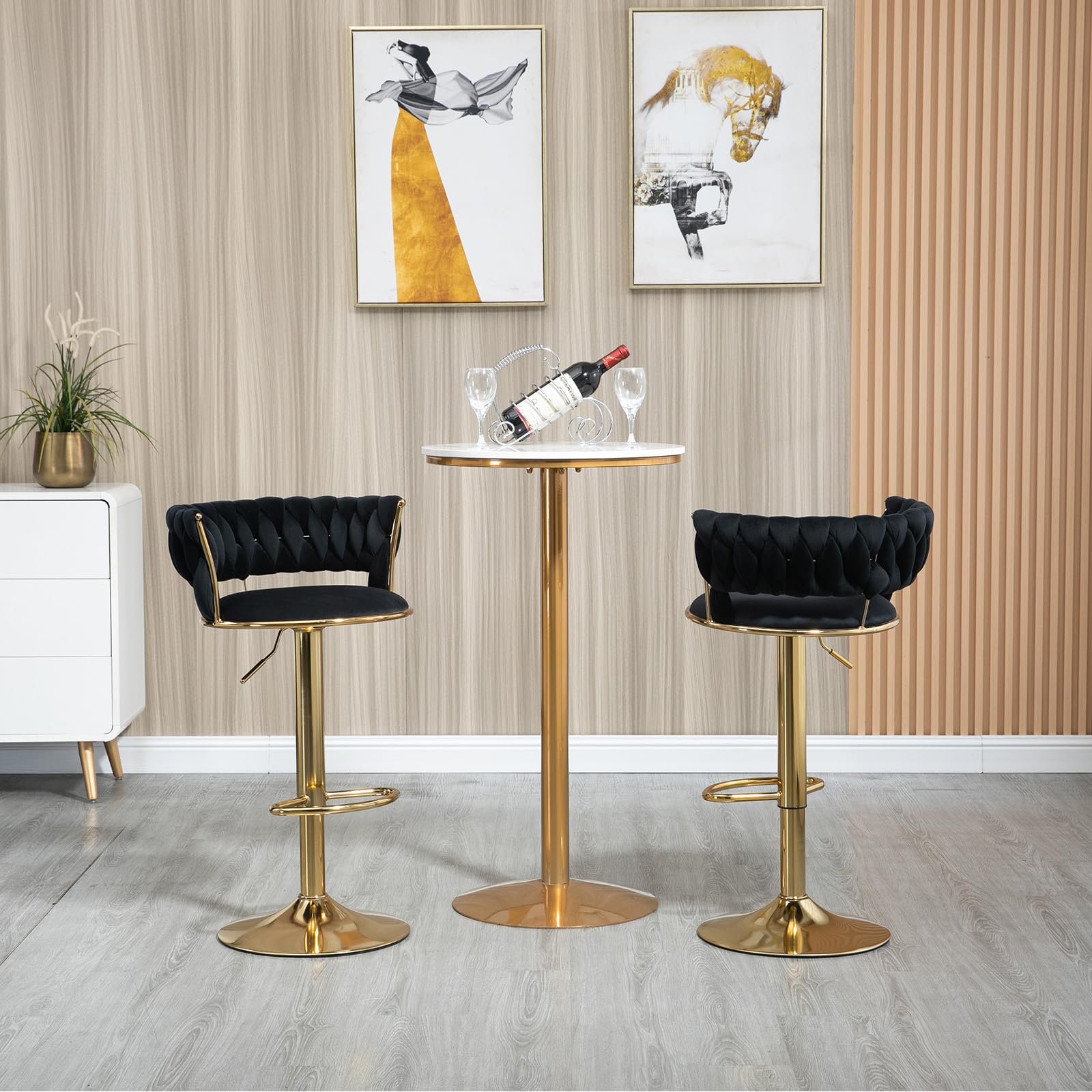 This bar stool has a plush velvet fabric that upholsters the seat and backrest. Padded with high-density foam provides you with comfortable seating. Built-in footrest for added appeal and gives your feet a place to relax.